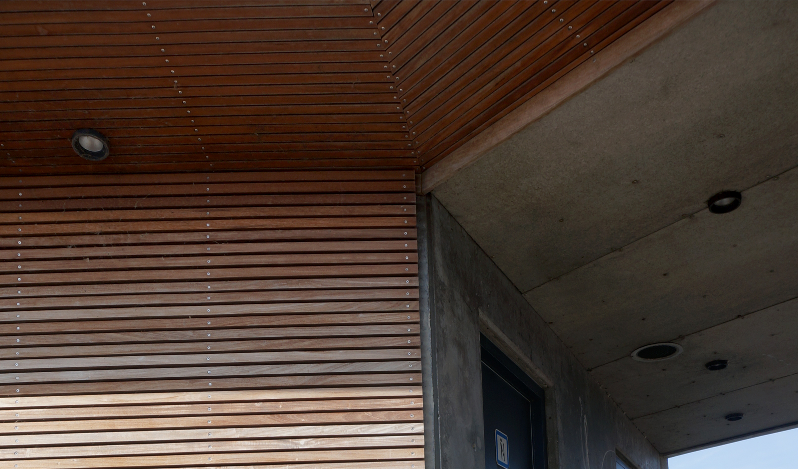 The new structure at the tip of one of the wave breakers in Elsinone North Harbour serves both as shelter, viewing platform and service facility for the yacht harbour. The facade facing the sea is tilted to withstand large waves crashing on to the pier, while the more sheltered side towards the city centre is partly clad with wood panels, and has integrated seating.